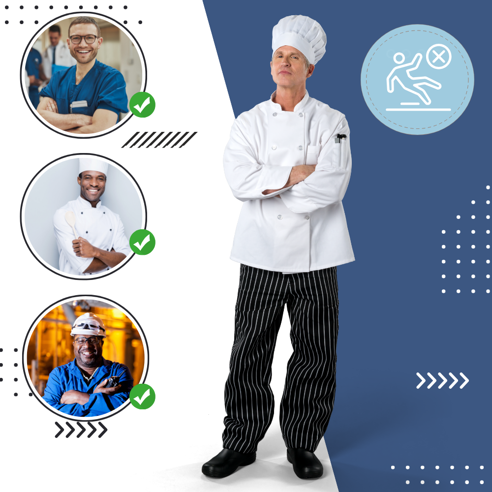 Durable clogs that fit well and stay comfortable all day. Handy for long shifts and easy to slip on and off.